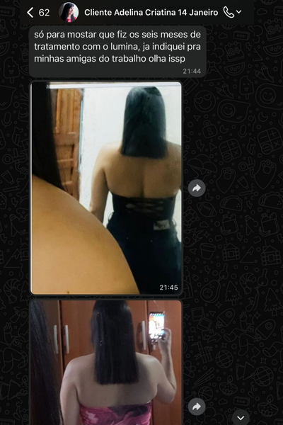 Com o uso contínuo, o Lumina Hair potencializa a nutrição dos folículos e os resultados ficam progressivamente mais intensos, duradouros e consistentes.